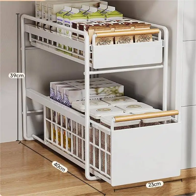 Double-layer storage provides additional space for organizing kitchen supplies and household items.