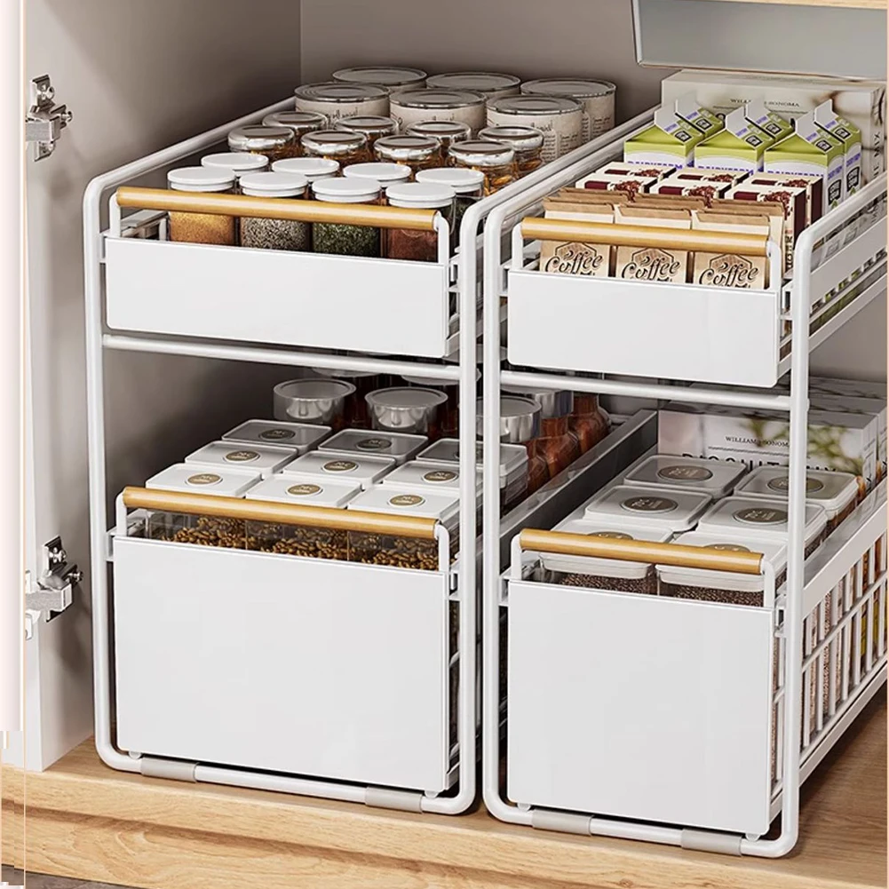2-Tier Pull-Out Cabinet Organizer – Space-Saving Storage Solution