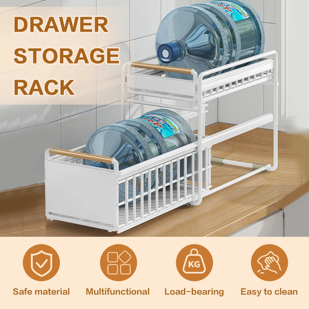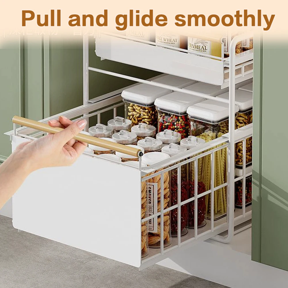 2-Tier Pull-Out Cabinet Organizer – Under Sink Sliding Storage Drawer with Hooks