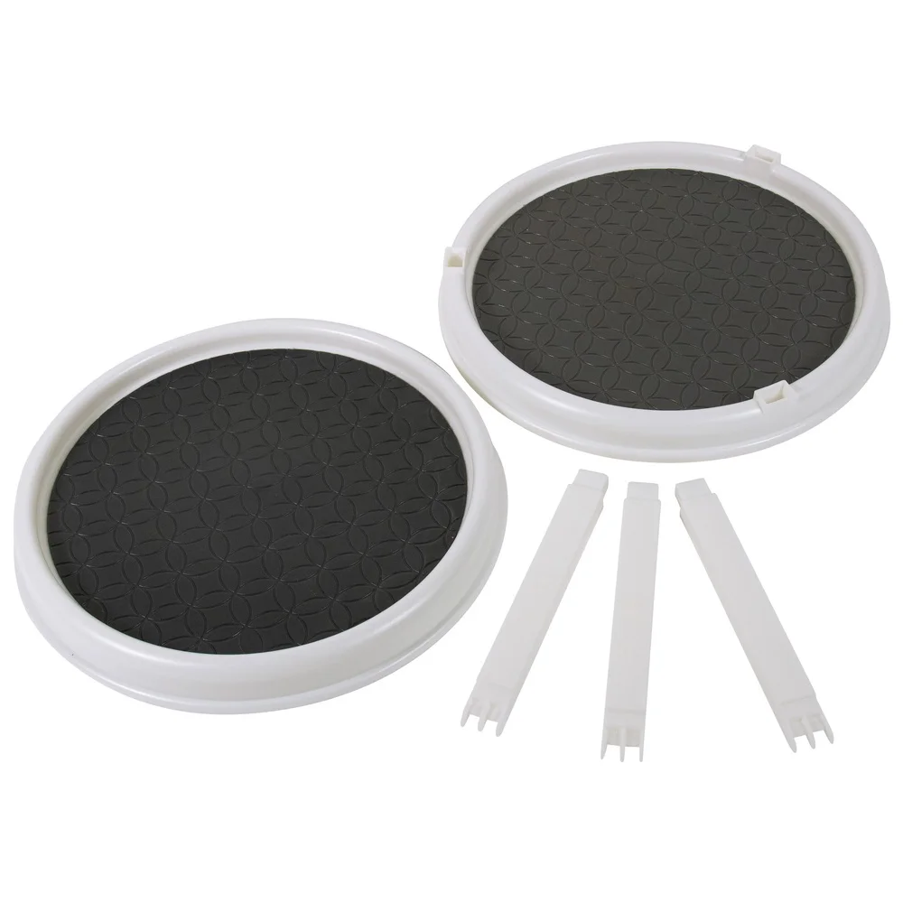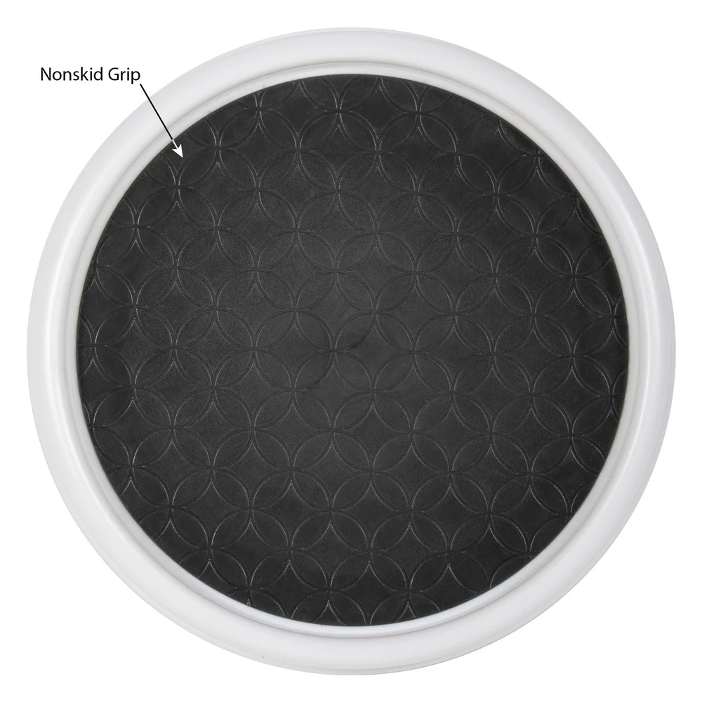 Non-skid backing helps keep bottles and containers stable while rotating.