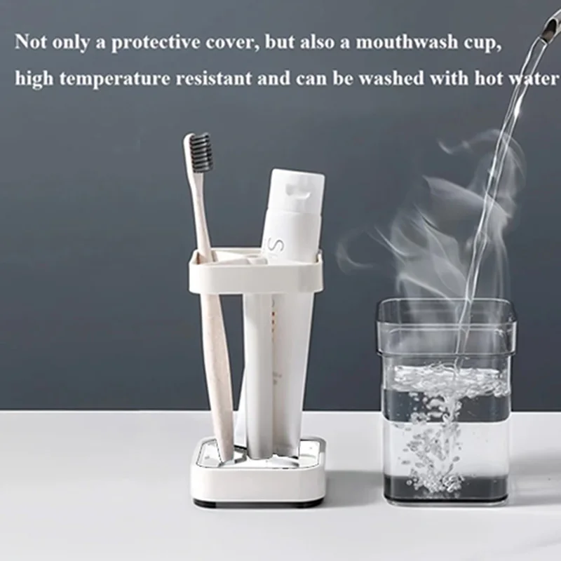 2-in-1 Family Toothbrush Holder with Cover – Bathroom Countertop Organizer